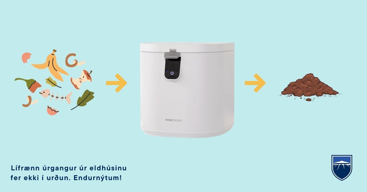 Jarðgerðarvélin FoodCycler vinnur duftkennt efni úr lífræna úrganginum úr eldhúsinu, sem hægt er að nýta í garðinn, til dæmis. Hér má skoða frekari upplýsingar um vélina. Íbúum býðst að eignast vélina á 50% afslætti.